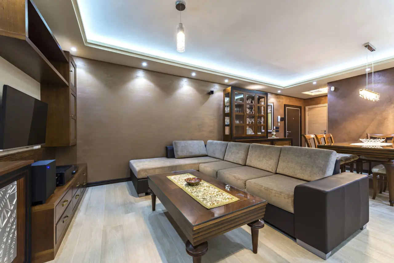 - Soggiorno: Nel soggiorno, l’illuminazione d’ambiente dovrebbe essere diffusa e regolabile per adattarsi a diverse attività, come guardare la TV, leggere o intrattenersi con gli amici. L’aggiunta di luci d’accento, come faretti orientabili o lampade da terra, può mettere in risalto elementi specifici, come opere d’arte o piante, aggiungendo profondità e interesse visivo.